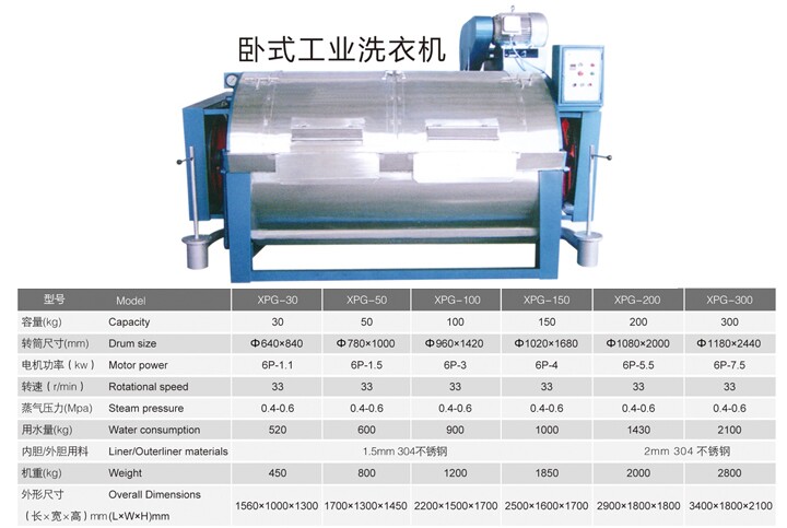 工業洗衣機(全自動工業洗衣機\洗脫兩用機\大型洗衣設備)主要特點:1. 工業洗衣機內、外殼均采用優質不銹鋼制造,并經拋光處理,不污染損傷衣物;2. 工業洗衣機自動定時,洗滌容量大,噪音低、震動小;3. 工業洗衣機工作門設有安全裝置,保證操作安全;4. 工業洗衣機先進溫度控制系統,確保漂洗加工效果;5. 工業洗衣機節省能源,便于操作與保養。