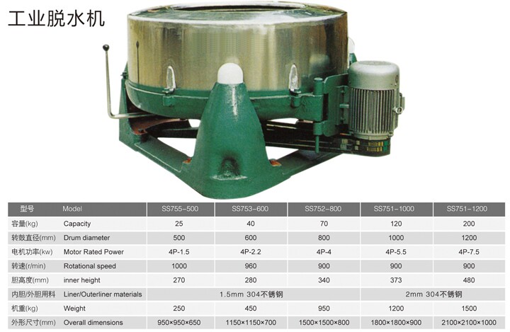 工業脫水機(脫水機\工業脫水機\甩干機\離心機)主要特點:1. 工業脫水機獨特的三足懸擺式結構,可避免因載重不平衡而產生的振動;2. 工業脫水機轉膽采用不銹鋼板精制而成,堅固耐用;3. 工業脫水機特有制動開合臂裝置,制動性能好,安全可靠;4. 工業脫水機采用三角膠帶傳動,由電機帶動起步輪,緩步啟動至正常轉速,運轉平穩無振動。
